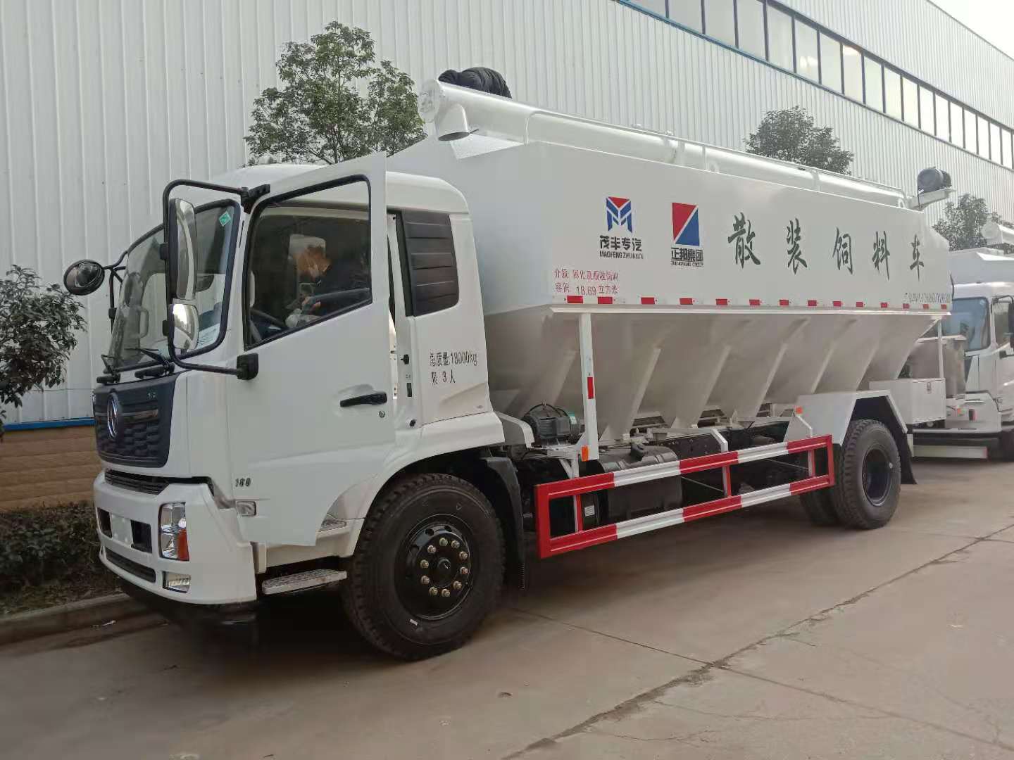 東風(fēng)天錦豪華駕駛室,康明斯6缸180馬力發(fā)動(dòng)機(jī),法士特8檔變速箱,5000mm軸距,10.00R20鋼絲胎,電動(dòng)門窗,中控門鎖,原廠空調(diào),ABS,方向助力,汽車記錄儀,斷氣剎;上裝罐體容積約22立方,罐體采用4mm優(yōu)質(zhì)碳鋼板制作,罐體內(nèi)分為叁個(gè)倉(cāng),可獨(dú)立控制各分倉(cāng)卸料順序和速度,整車3條蛟龍(底部水平絞龍、尾部垂直絞龍、頂部卸料絞龍),由3個(gè)5.5kw 380v電機(jī)帶動(dòng)各絞龍工作,頂部絞龍液壓控制舉升,可左右旋轉(zhuǎn)180°,整車尺寸:9000×2500×3800mm