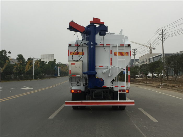 上裝罐體:罐體材質(zhì)采用4mm優(yōu)質(zhì)碳鋼板,整車3條絞龍,由3個(gè)5.5KW電機(jī)380V外接電源帶動,頂部絞龍用液壓控制舉升,可左右旋轉(zhuǎn)180°。罐體內(nèi)分為叁個(gè)倉,可以獨(dú)立控制各分倉卸料順序和速度。(備注:此報(bào)價(jià)為標(biāo)配,國產(chǎn)電機(jī),德力西電柜)